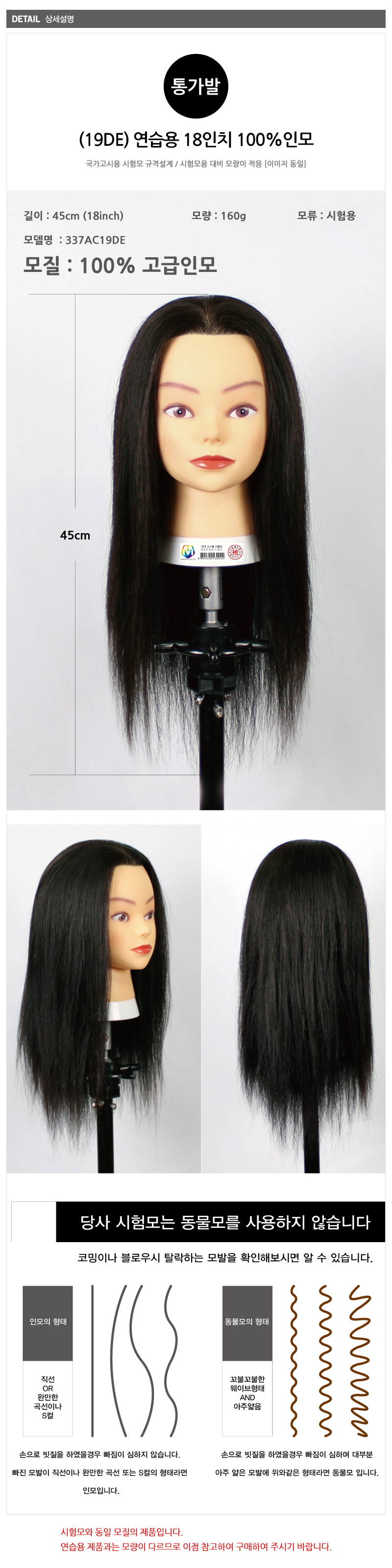 미용사(일반)연습용 통가발 18인치 100%고급인모 국가고시용 규격설계
