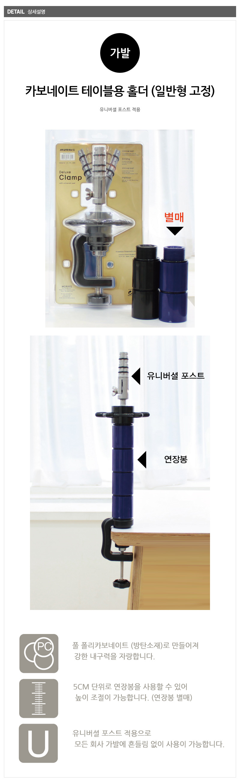 [W1] 카보네이트 테이블용 홀더 (일반형 고정) 유니버셜 포스트 적용